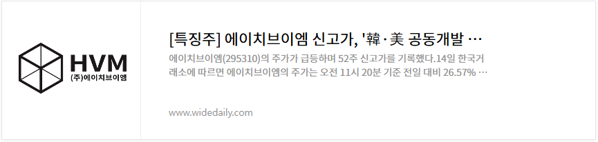 이번 포스팅에서는 에이치브이엠의 차트 분석 및 향후 전망, 주가 상승 이유, 기업 정보에 대해 자세히 알아보겠습니다.